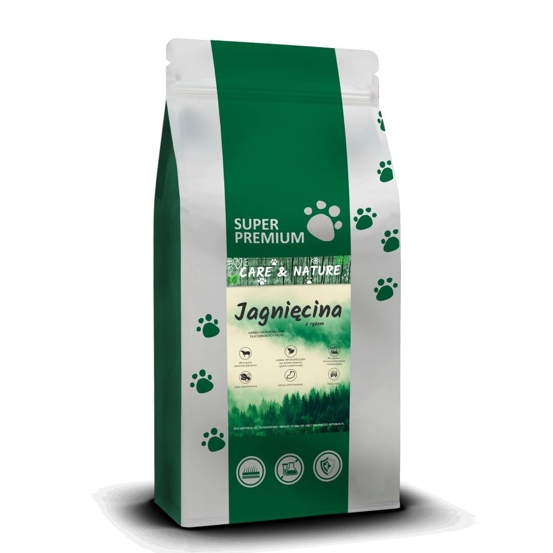 Sucha karma Care & Nature z jagnięciną i ryżem dla psa to kompletny posiłek zawierający wysokiej jakości białka zwierzęce, witaminy oraz mikroelementy. Opracowane przez zwierzęcych dietetyków, troskliwie uwzględniających naturalne potrzeby naszych zwierzaków. Są one produkowane w Wielkiej Brytanii, w jednej z najbardziej nowoczesnych i zaawansowanych fabryk na świecie. Bardzo ważnym elementem mającym wpływ na wysoką jakość karmy jest zapewnienie dobrej jakości surowców od stałych i rzetelnych dostawców. Świeże mięso jest pozyskiwane z gospodarstw, których właściciele troszczą się o dobrostan swoich zwierząt. Musi ono być tej samej jakości jak to przeznaczone do spożycia przez ludzi. Pozyskane u źródła mięso jest transportowane w chłodniach do fabryki i dopiero tam jest dalej przetwarzane. Tak więc nie traci swoich walorów odżywczych i smakowych.